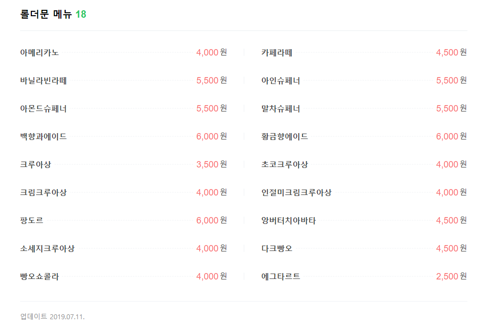 4. 가격 : 메뉴판 사진 참조